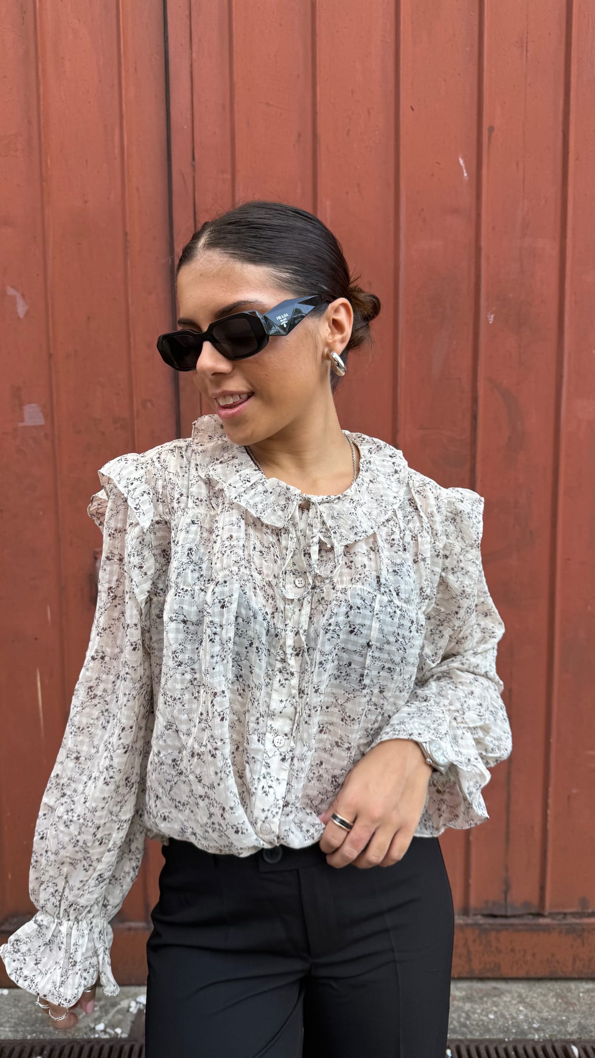 Questa splendida camicia è facile da abbinare a seconda dell'occasione e ti darà sicuramente quel tocco femminile in più. Scegli jeans larghi e tacchi per un perfetto look casual-chic. - Tipologia di prodotto : Camicia - Collo : Collo Camicia - Manica : Maniche lunghe - Polsini : Polsini elasticizzati - Chiusura : Chiusura con bottoni - Dettagli : Volant - Vestibilità : Loose Fit
