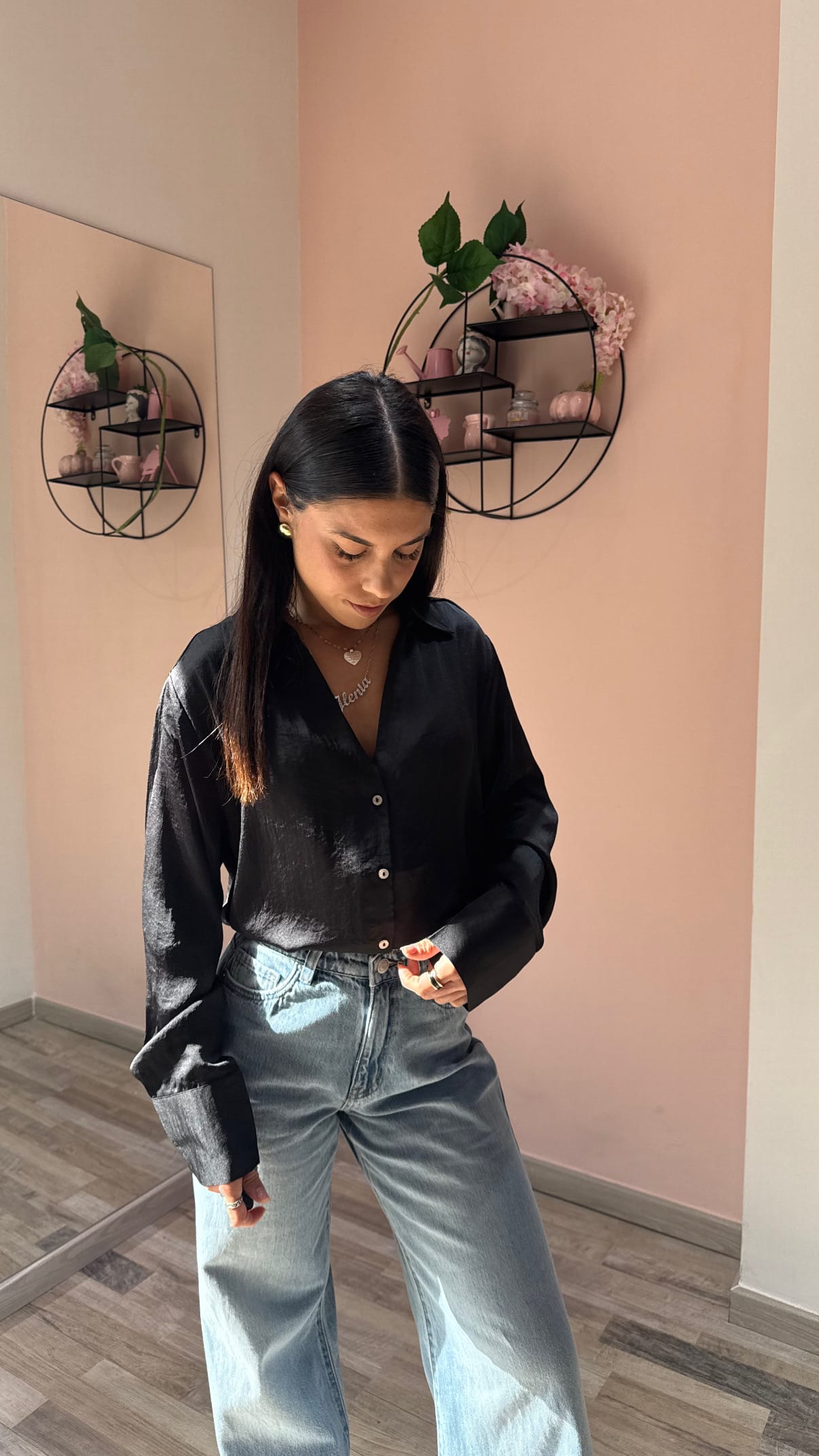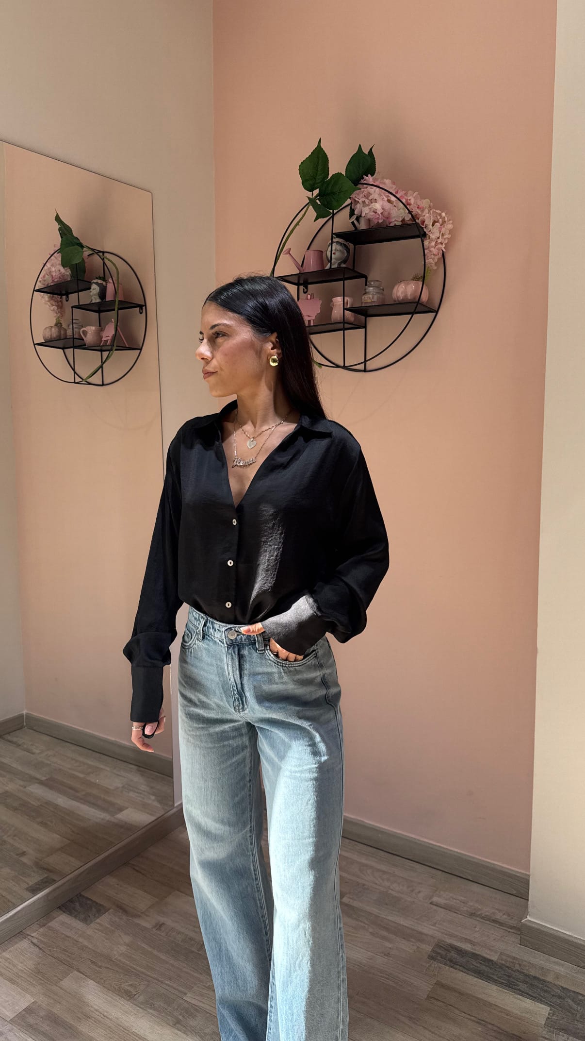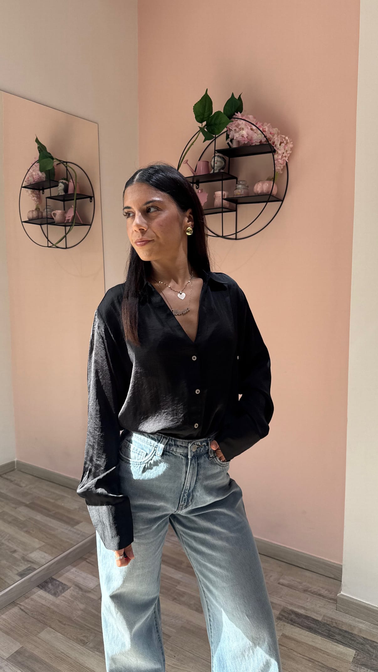 Questa camicia è un’aggiunta chic e versatile al tuo guardaroba, perfetta da indossare sia da sola sia aperta sopra un top semplice. Abbinala a jeans classici e una T-shirt basic per un look quotidiano fresco e moderno, oppure rendila più elegante con un paio di pantaloni e tacchi.