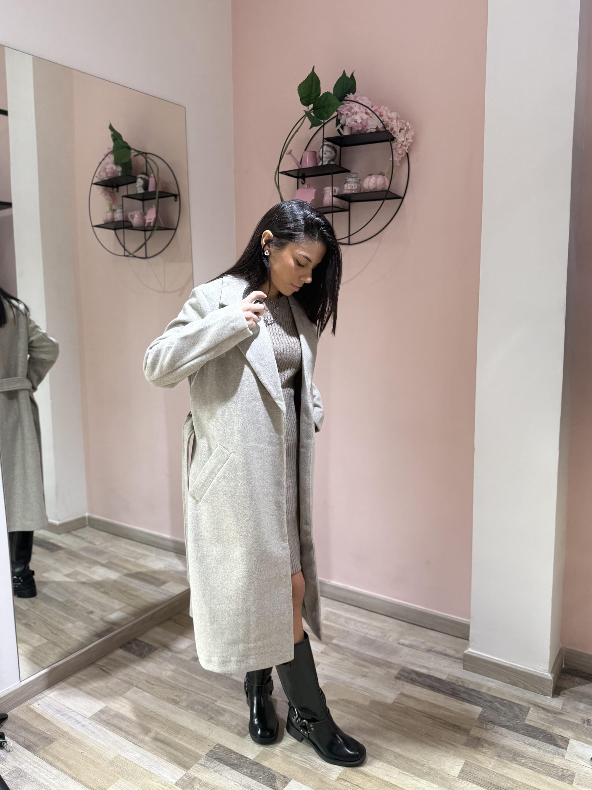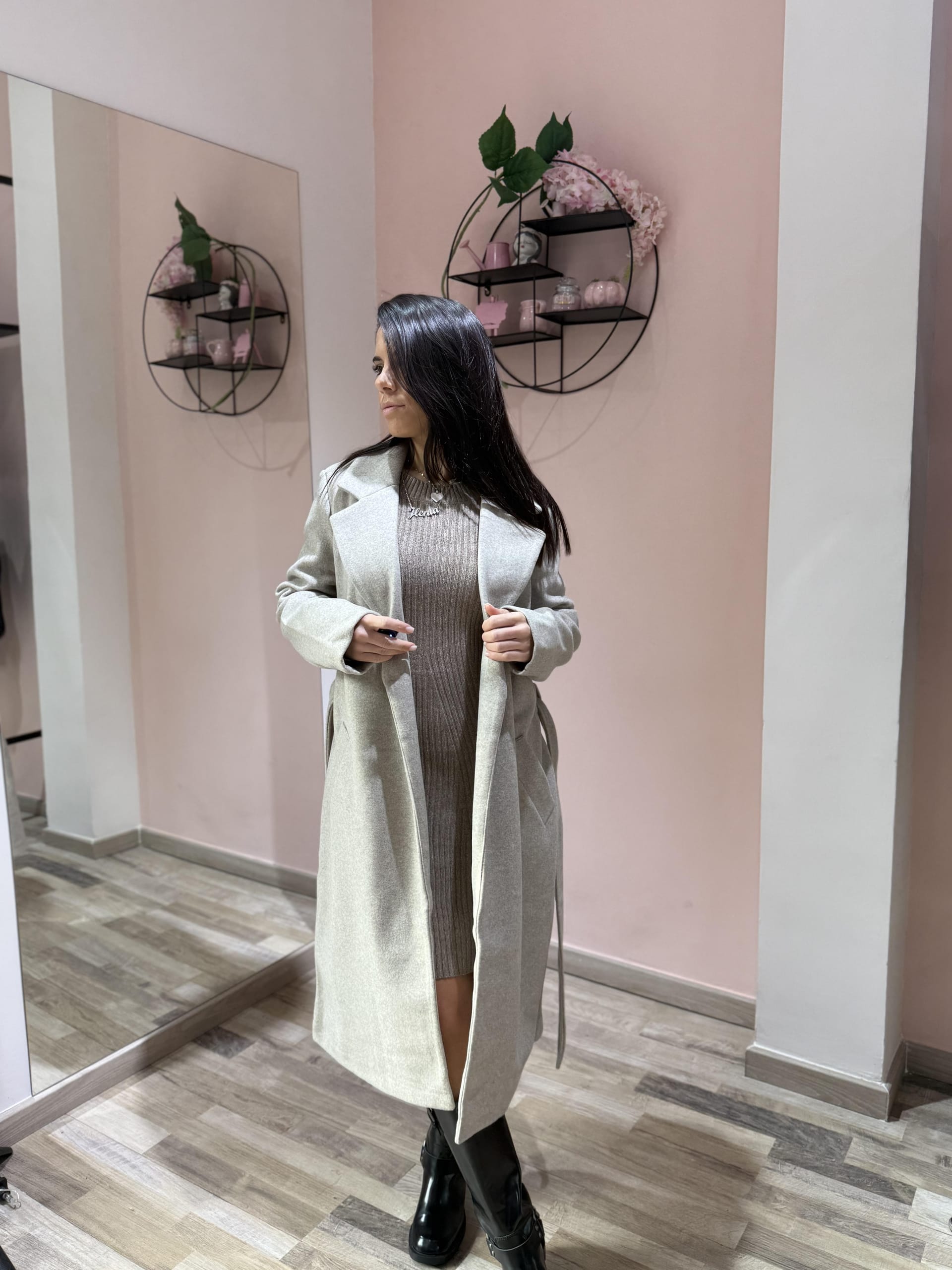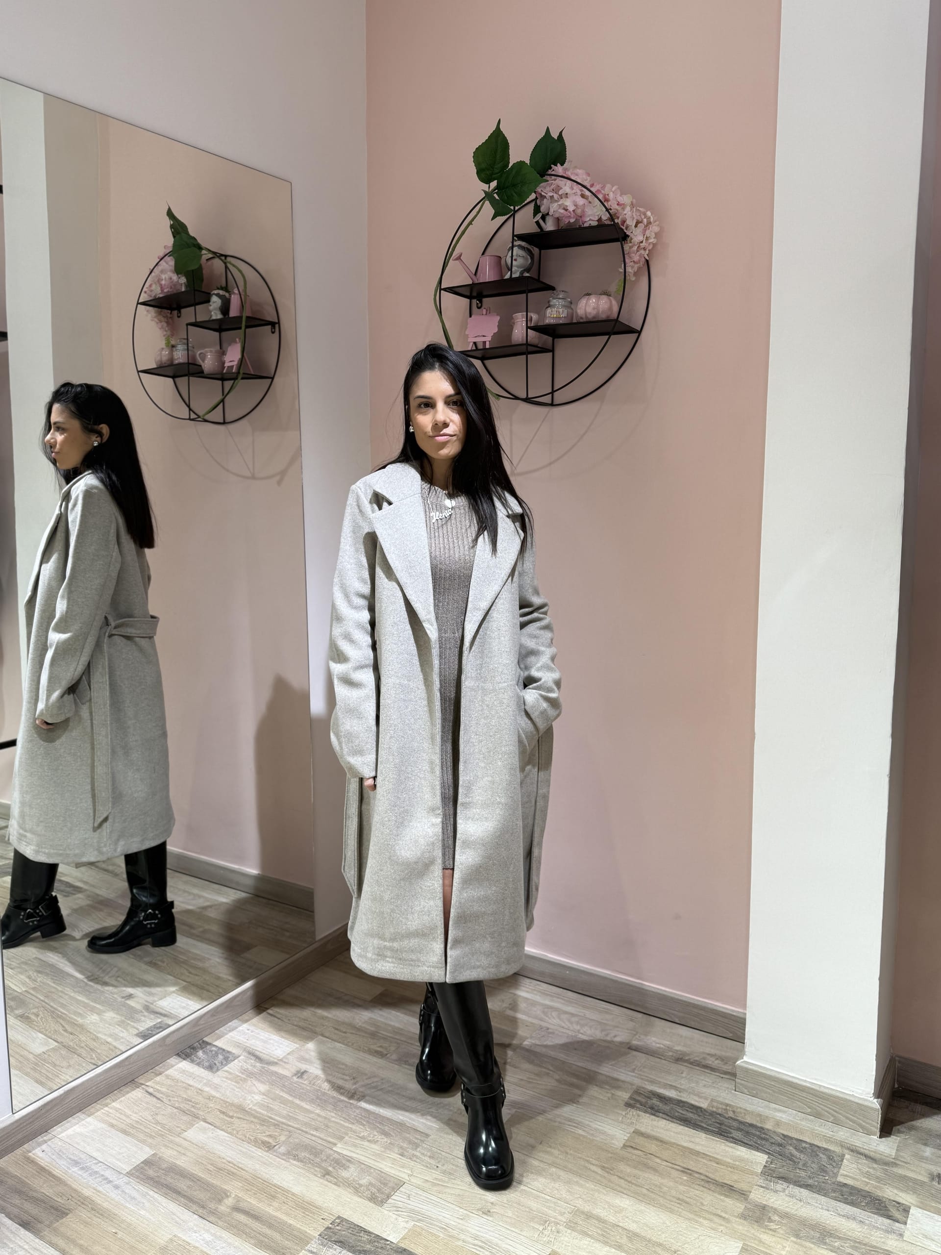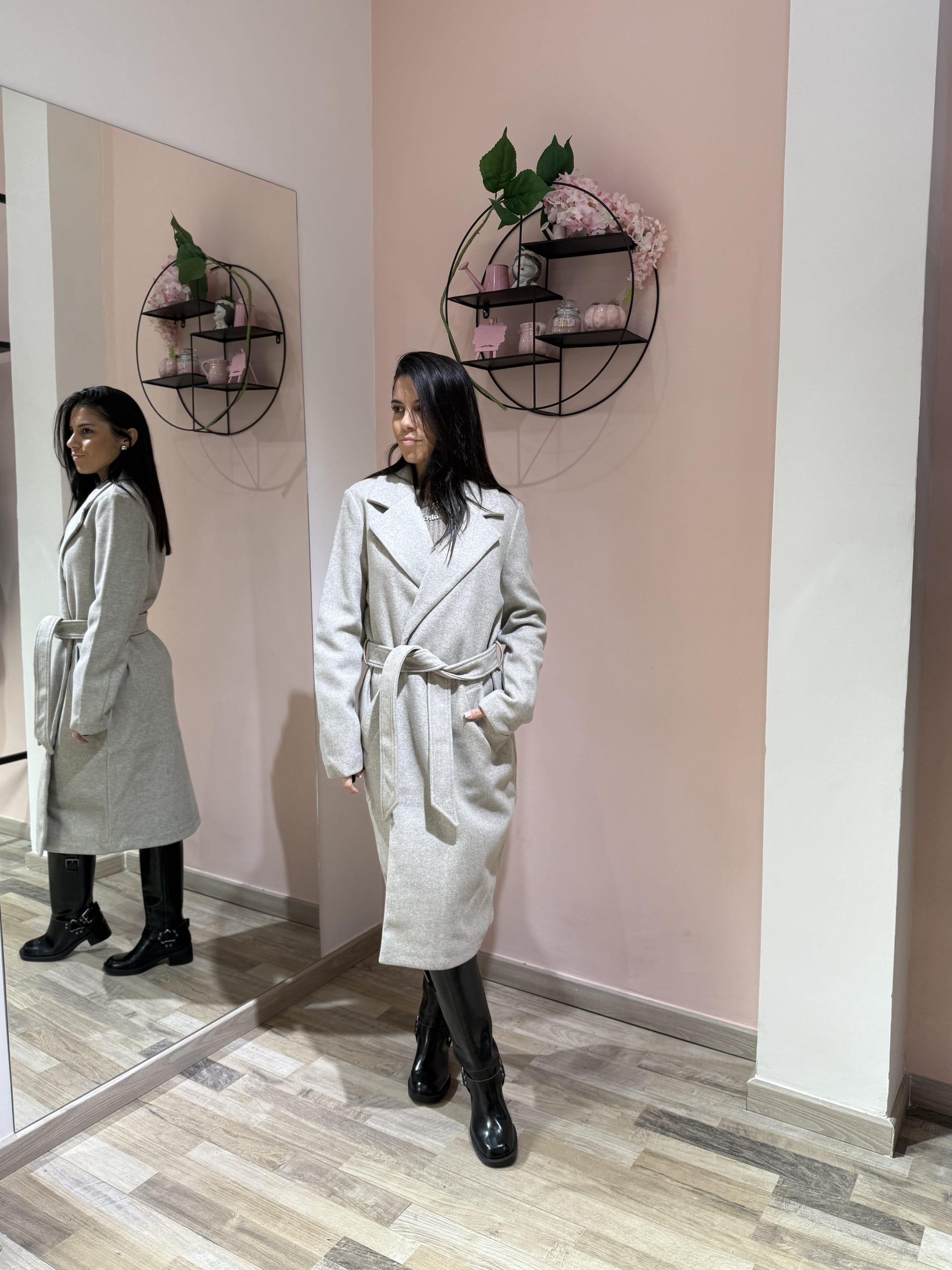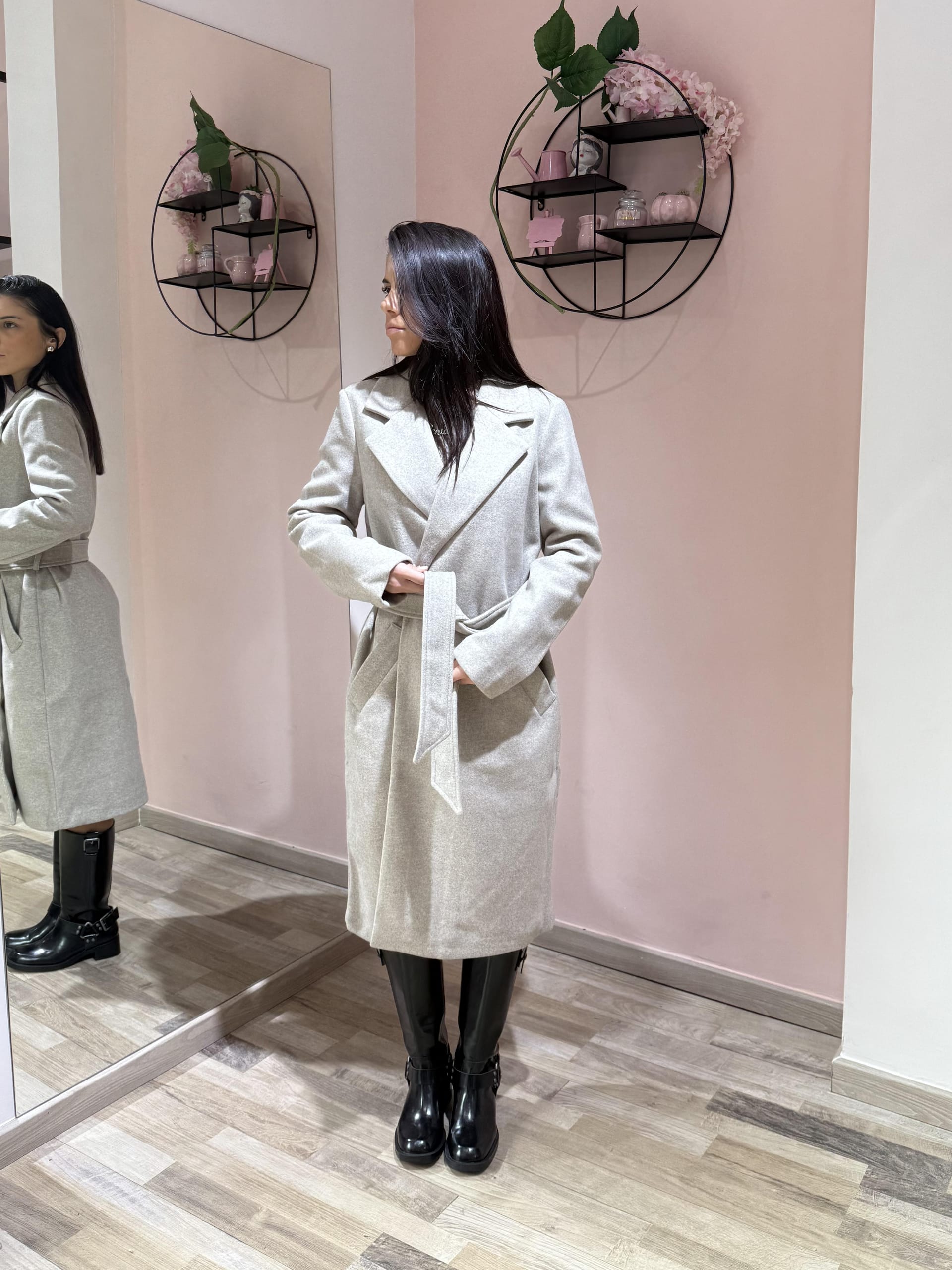 Cappotto dal design classico e femminile, caratterizzato da una linea dritta e moderna e da una cintura in vita che valorizza la silhouette. Realizzato in tessuto caldo e morbido, offre comfort e protezione nelle giornate più fresche, unendo praticità ed eleganza senza tempo. Perfetto da indossare sia aperto che chiuso per look casual-chic o più ricercati.