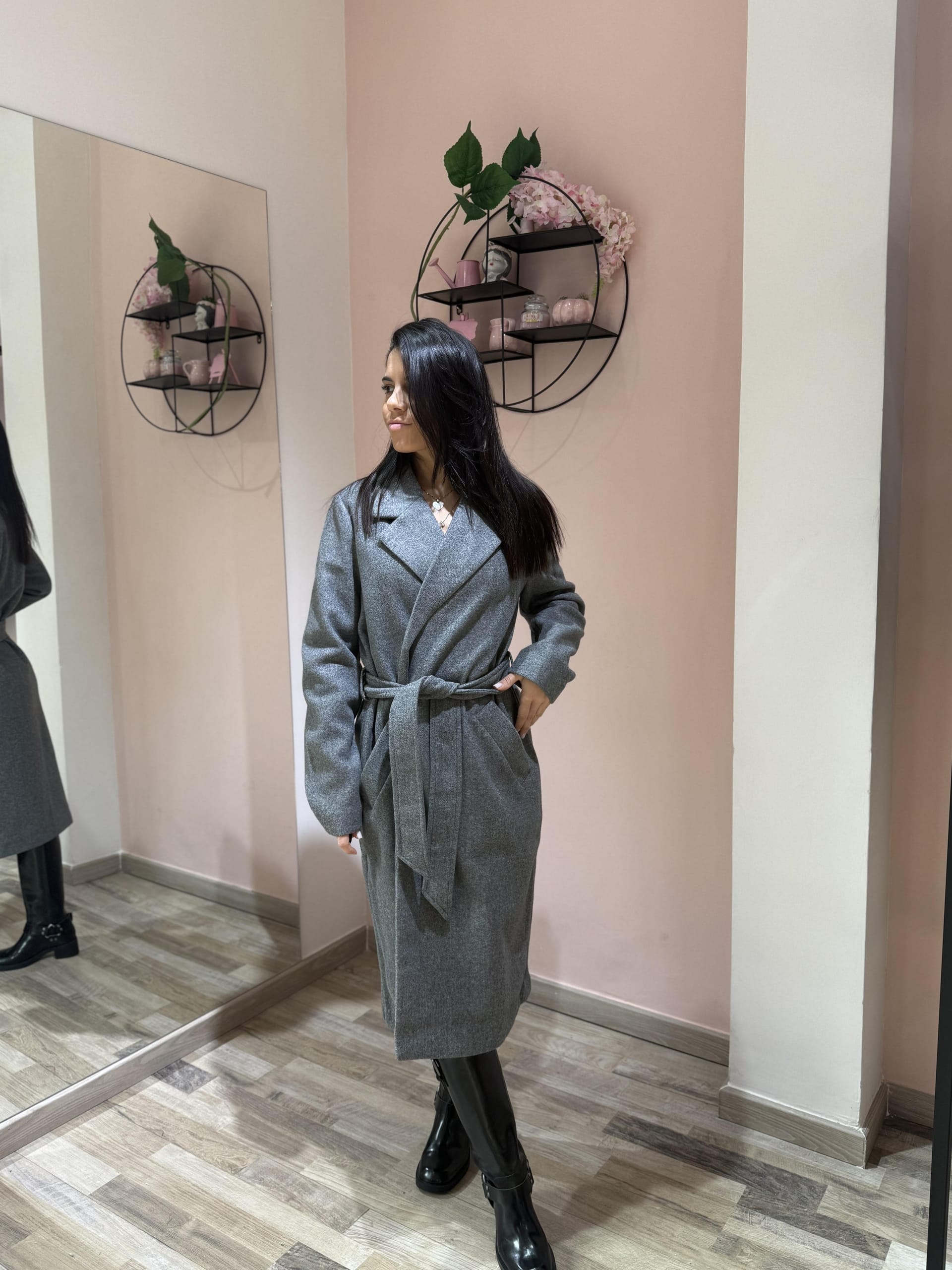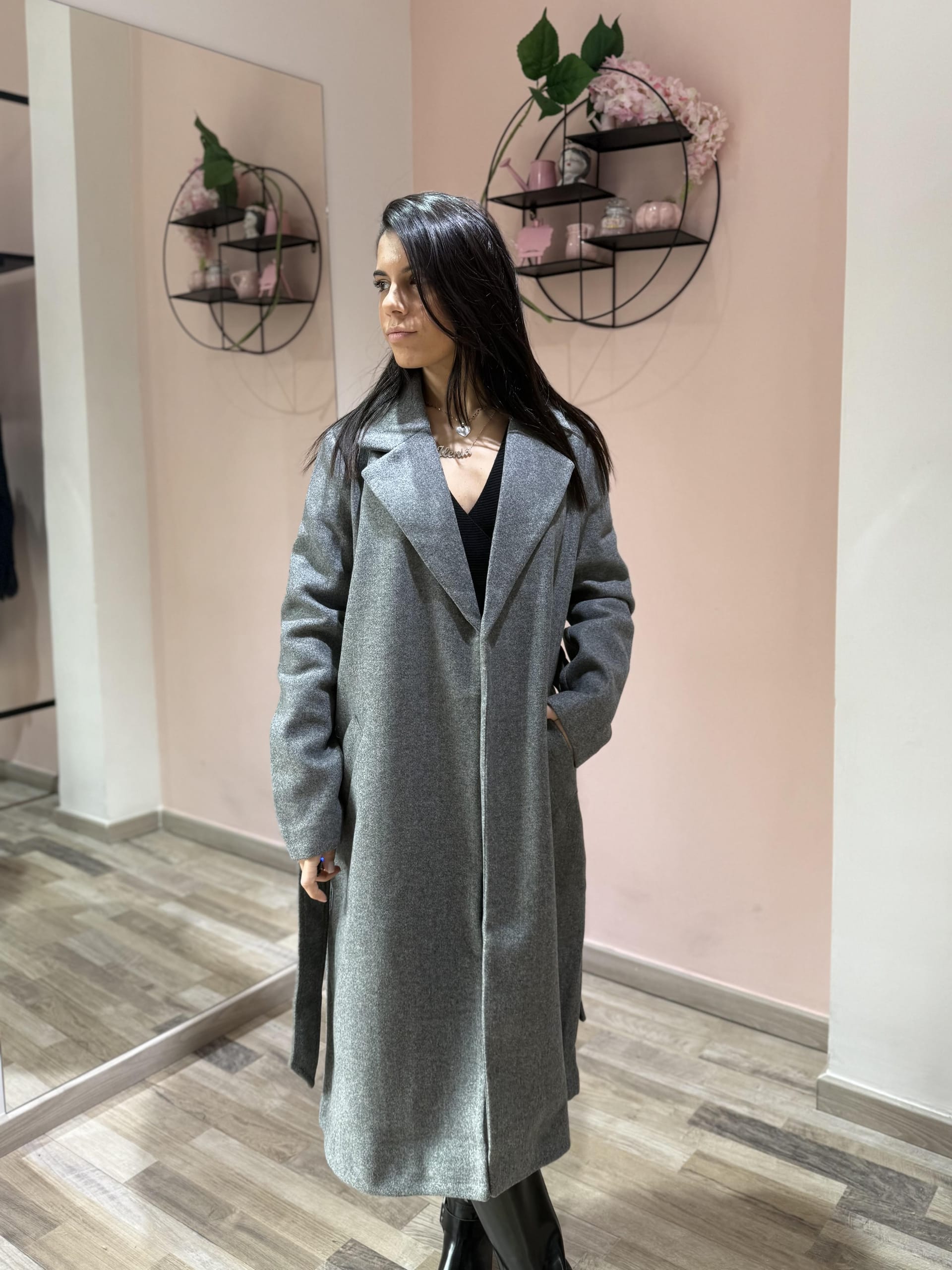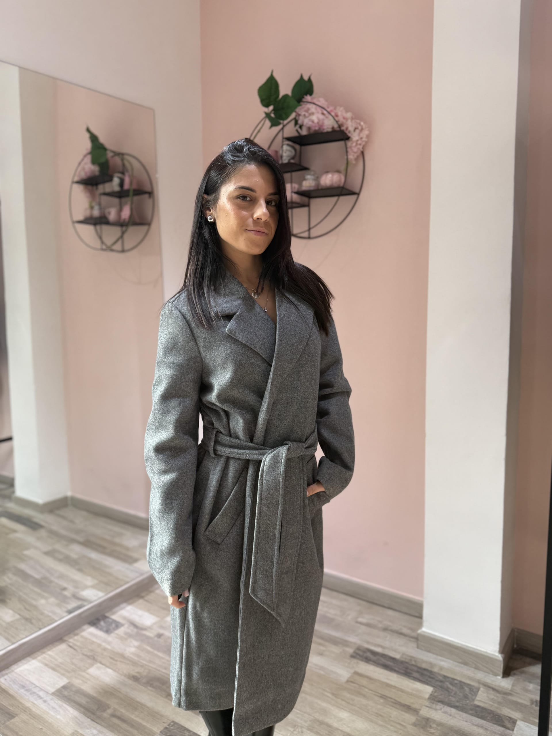 Cappotto dal design classico e femminile, caratterizzato da una linea dritta e moderna e da una cintura in vita che valorizza la silhouette. Realizzato in tessuto caldo e morbido, offre comfort e protezione nelle giornate più fresche, unendo praticità ed eleganza senza tempo. Perfetto da indossare sia aperto che chiuso per look casual-chic o più ricercati.