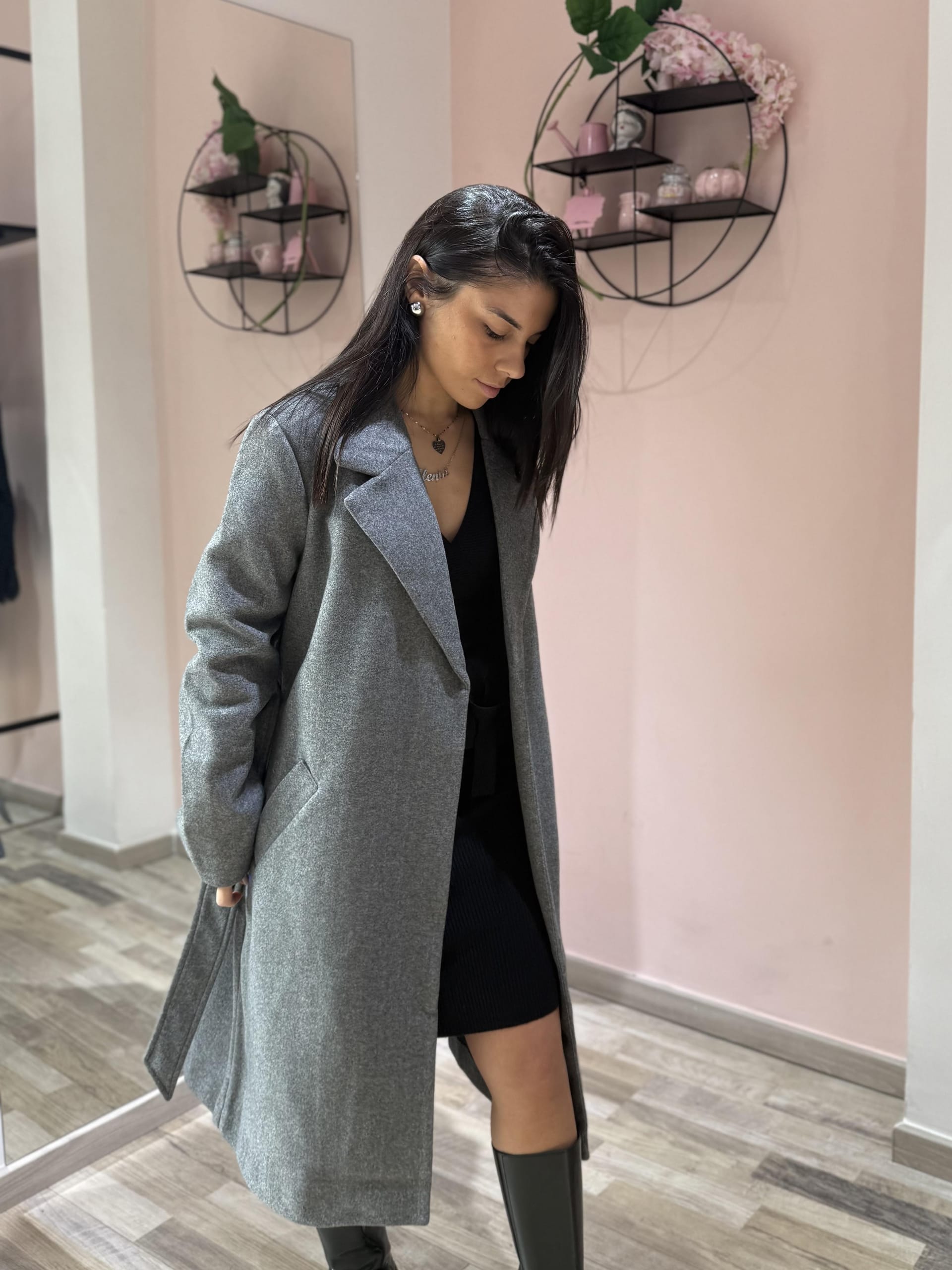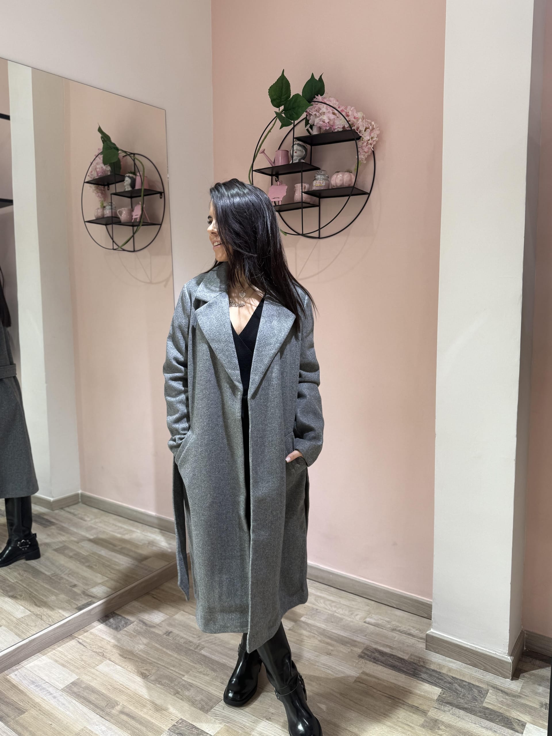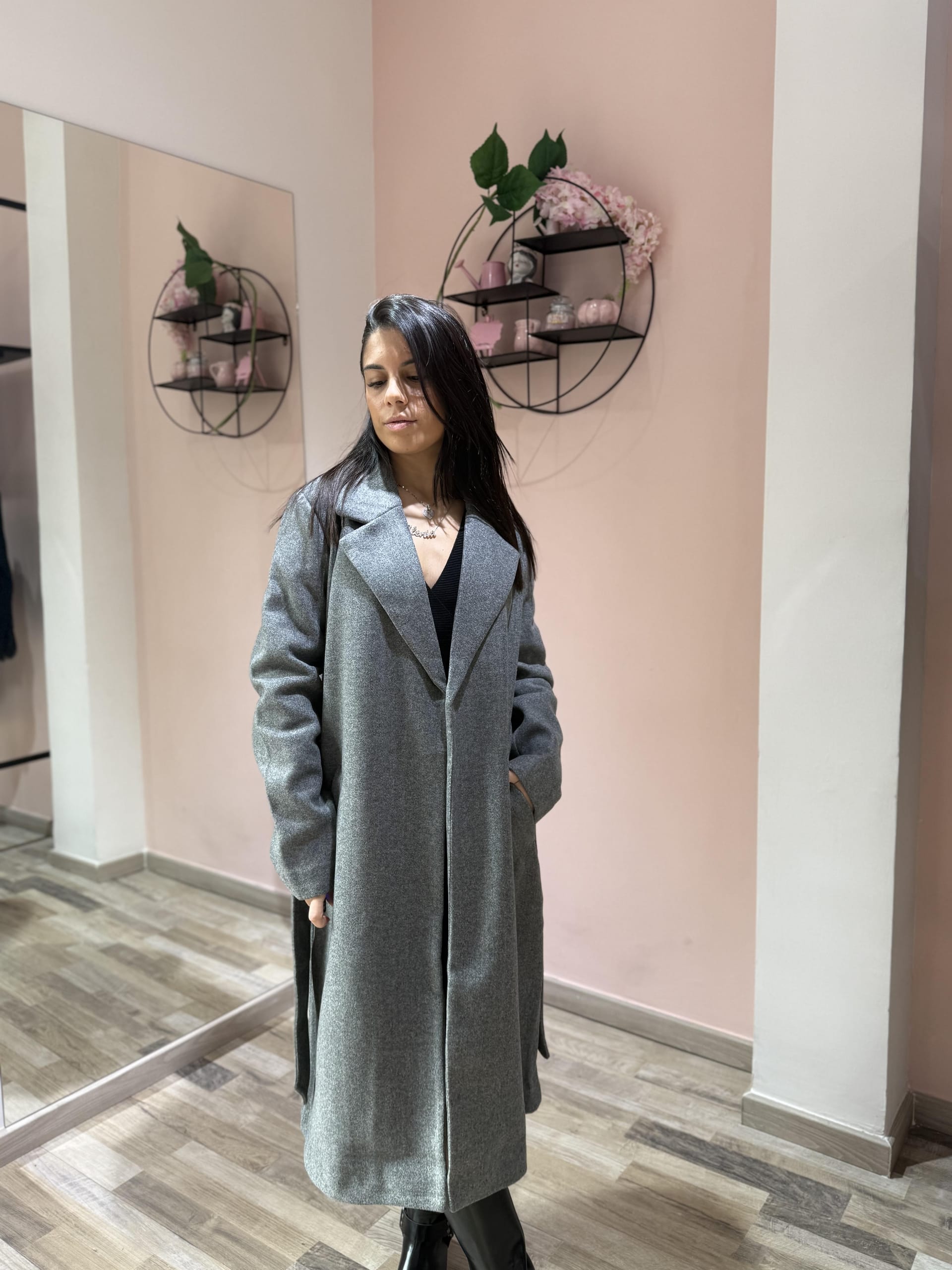 Cappotto dal design classico e femminile, caratterizzato da una linea dritta e moderna e da una cintura in vita che valorizza la silhouette. Realizzato in tessuto caldo e morbido, offre comfort e protezione nelle giornate più fresche, unendo praticità ed eleganza senza tempo. Perfetto da indossare sia aperto che chiuso per look casual-chic o più ricercati.