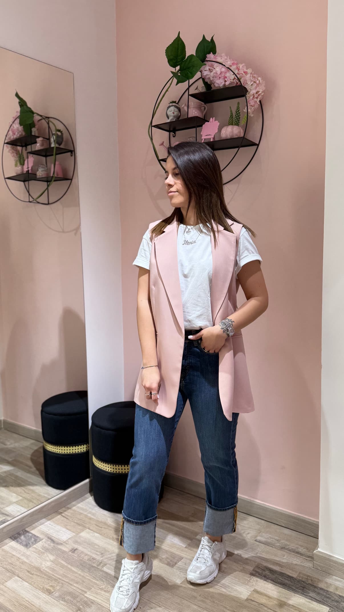Jeans elasticizzato con risvolto sul fondo, perfetto mix di comfort e stile. Vestibilità aderente per valorizzare la silhouette, ideale per look casual-chic.