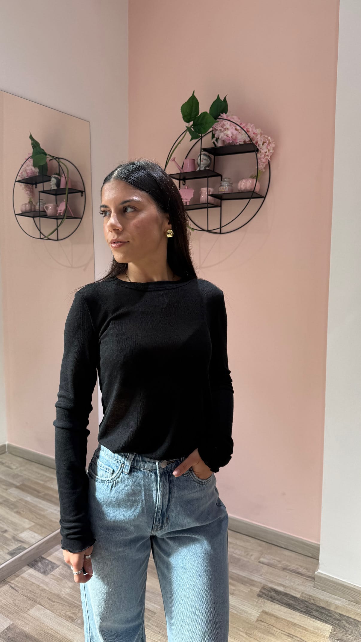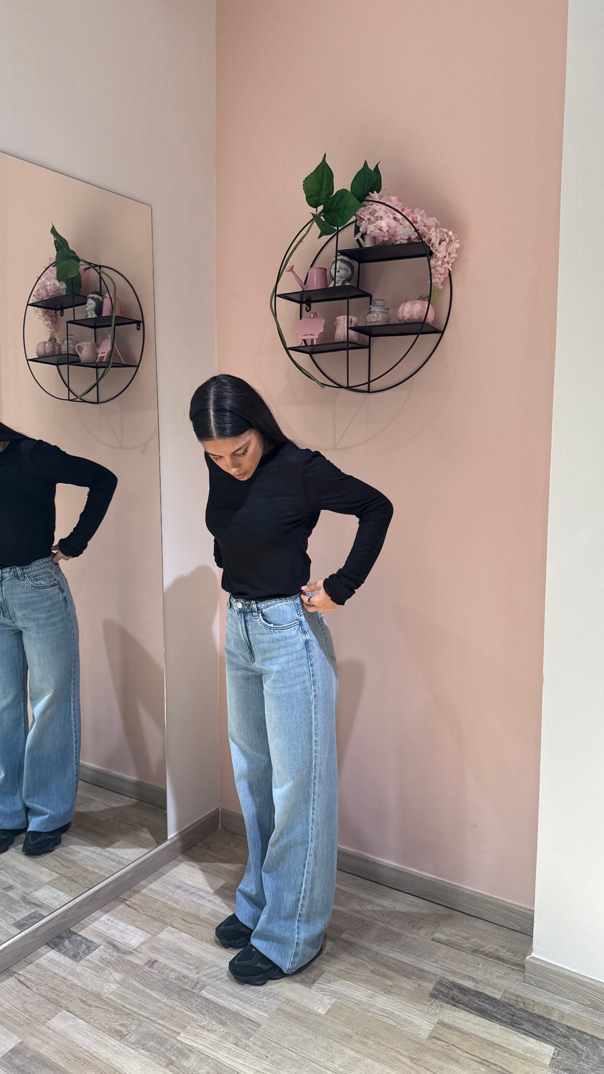I capi basic sono immancabili in quasi ogni guardaroba. I nostri top essenziali aiutano a completare e armonizzare qualsiasi outfit, e questo modello non fa eccezione. Indossalo con una shacket, un paio di mom-jeans dal taglio relaxed e anfibi chunky per un look quotidiano rilassato e di tendenza.