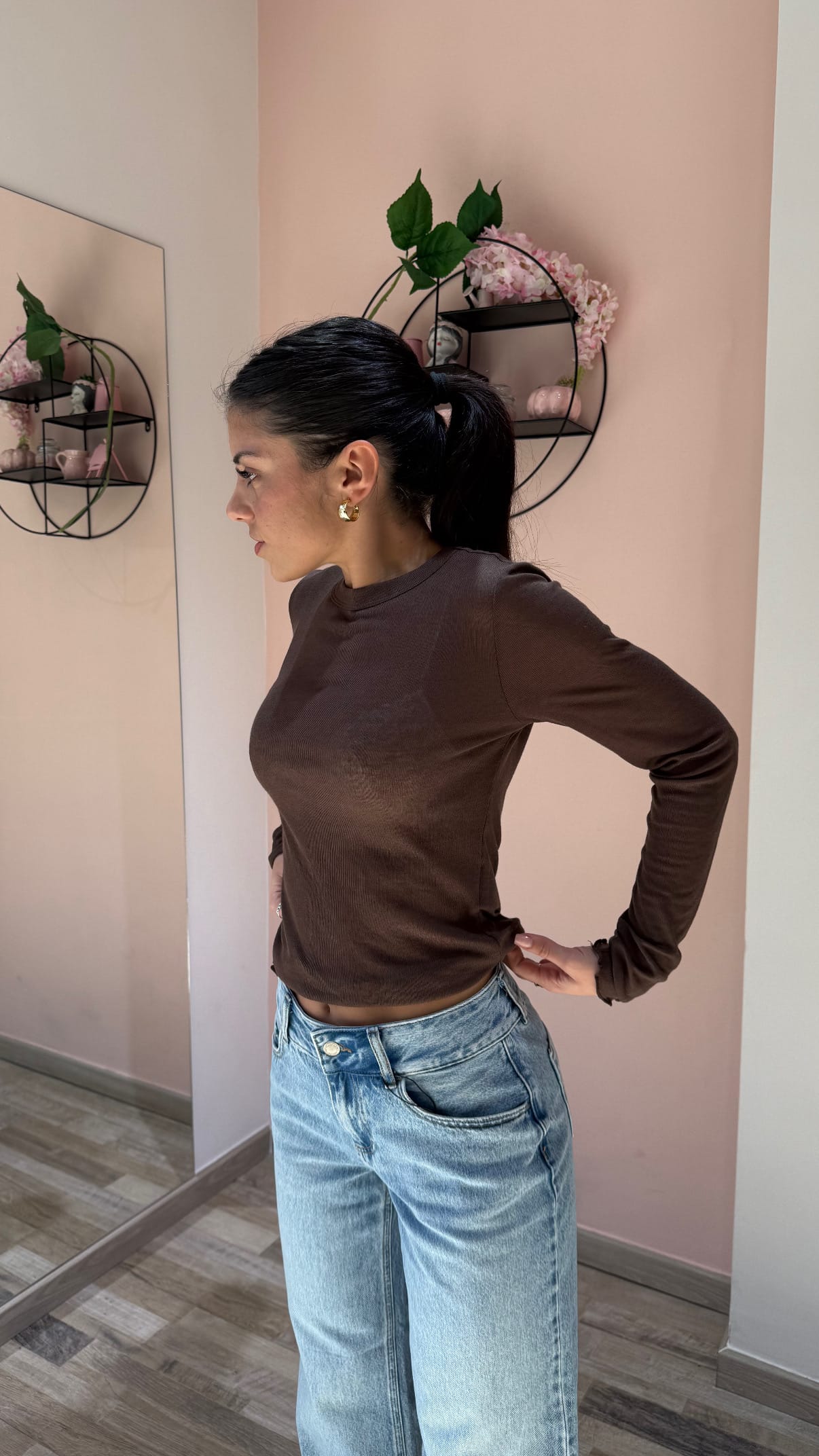 I capi basic sono immancabili in quasi ogni guardaroba. I nostri top essenziali aiutano a completare e armonizzare qualsiasi outfit, e questo modello non fa eccezione. Indossalo con una shacket, un paio di mom-jeans dal taglio relaxed e anfibi chunky per un look quotidiano rilassato e di tendenza.